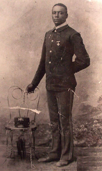 of Troop D, Tenth Cavalry, and sports a marksman's medal. A descendant told
